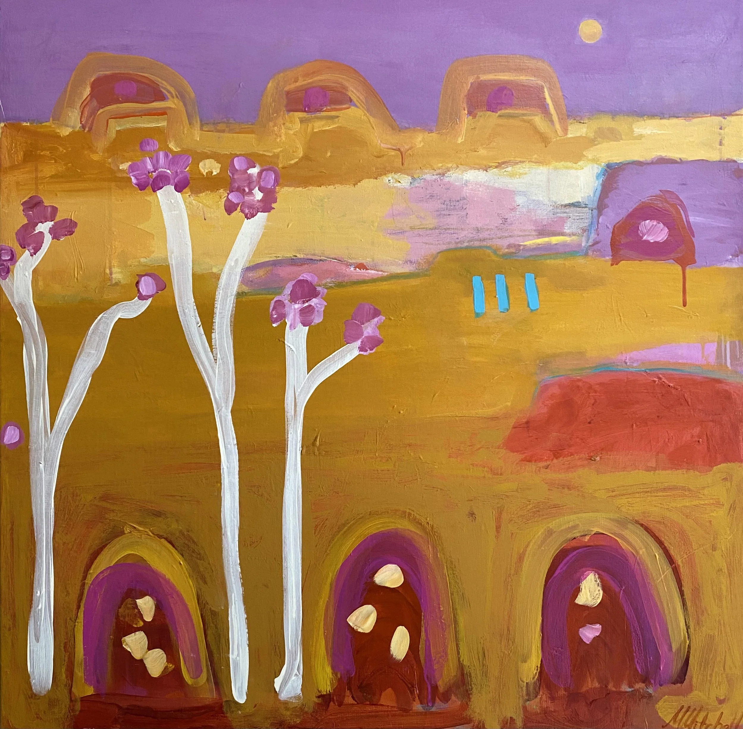 Myra’s inquiry of placing a different palette of colours together and our country’s landscape with its unique flora and fauna are the main inspiration for her artwork. The abstraction of nature is her way of connecting with it.